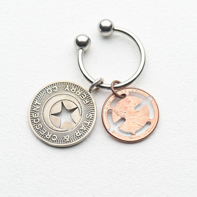 San Diegoのフェリー会社 ”Star & Crescent Ferry Company”で使用されていたヴィンテージのトークンと『EQ Lucky Penny』をつけたキーリング。